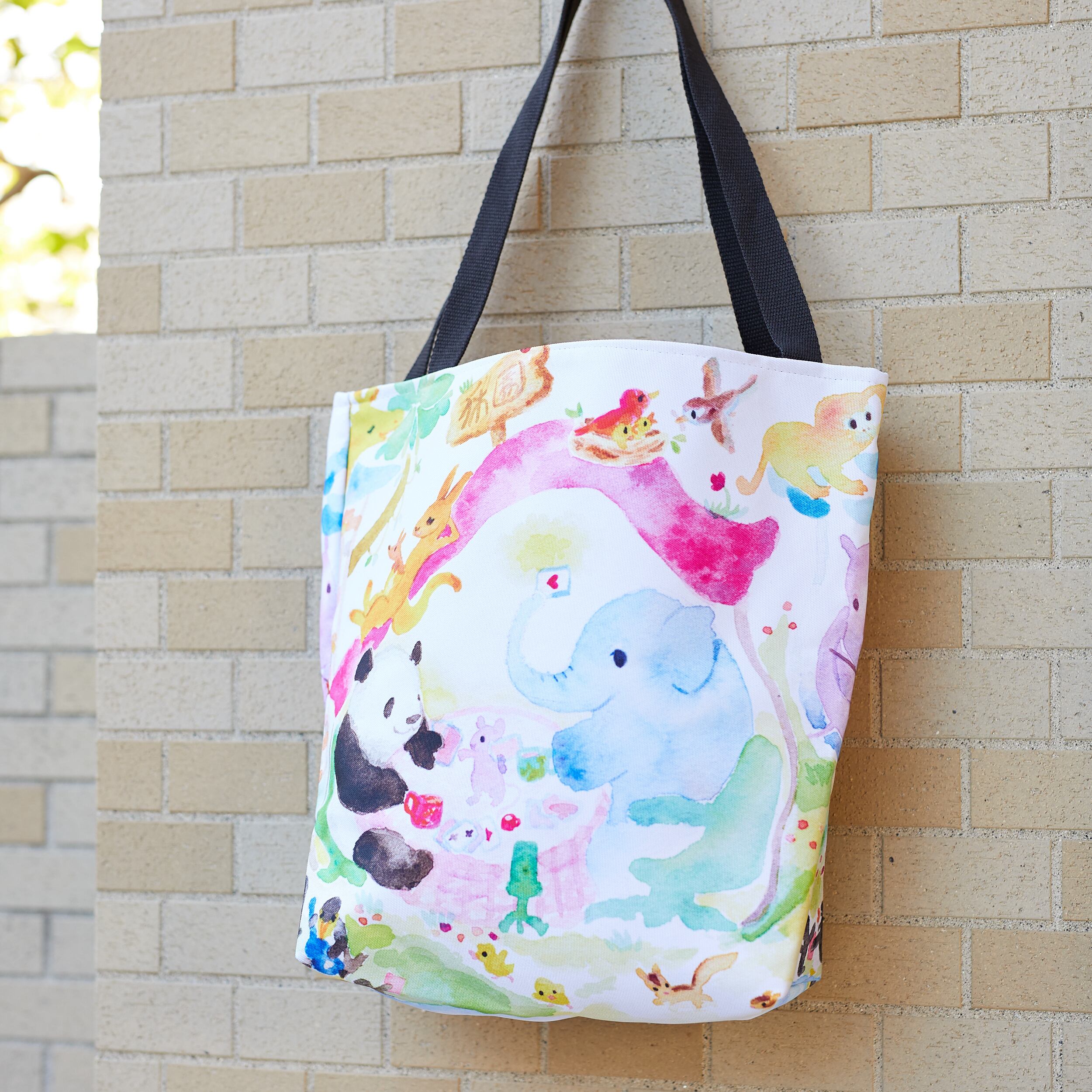 布そのものに鮮やかに印刷された生地で作られたトートバッグです♪